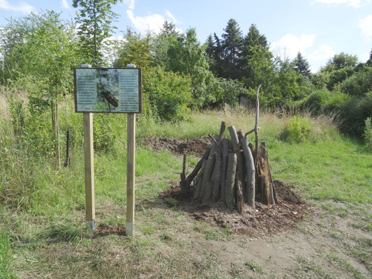 Eine Käferburg als Lebens- und Nistbereich für totholz- und holzmulmbesiedelnde Insekten, insbesondere Käfer, aber auch Hautflügler sowie holzzersetzende Pilze, wurde 2024 aus verscheidenen Hölzern erbaut.