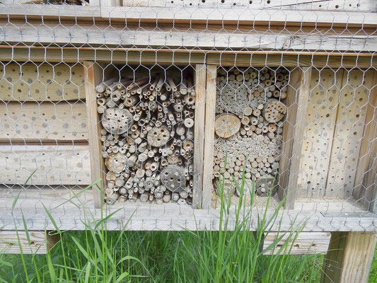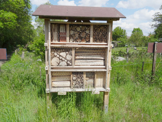 Eine Nisthilfe für Wildbienen (Insektenhotel) wurde 2021 errichtet und von zahlreichen Insekten angenommen.